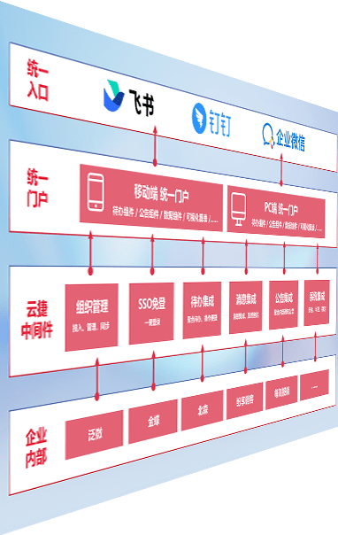 对协作平台提供支持服务,,支持企业应用与协作平台对接,,,包含组织同步、、消息集成、、、待办集成等。。。。支持目前主流的协作平台:钉钉、、企微和飞书。。。